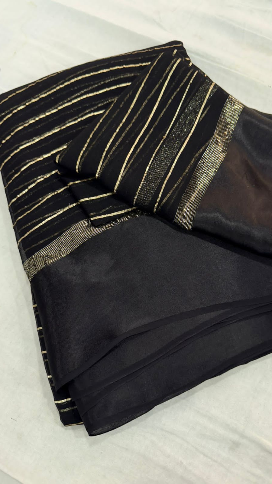 ✨ Elegant Viscose Georgette Saree With Satin Pata Border ✨