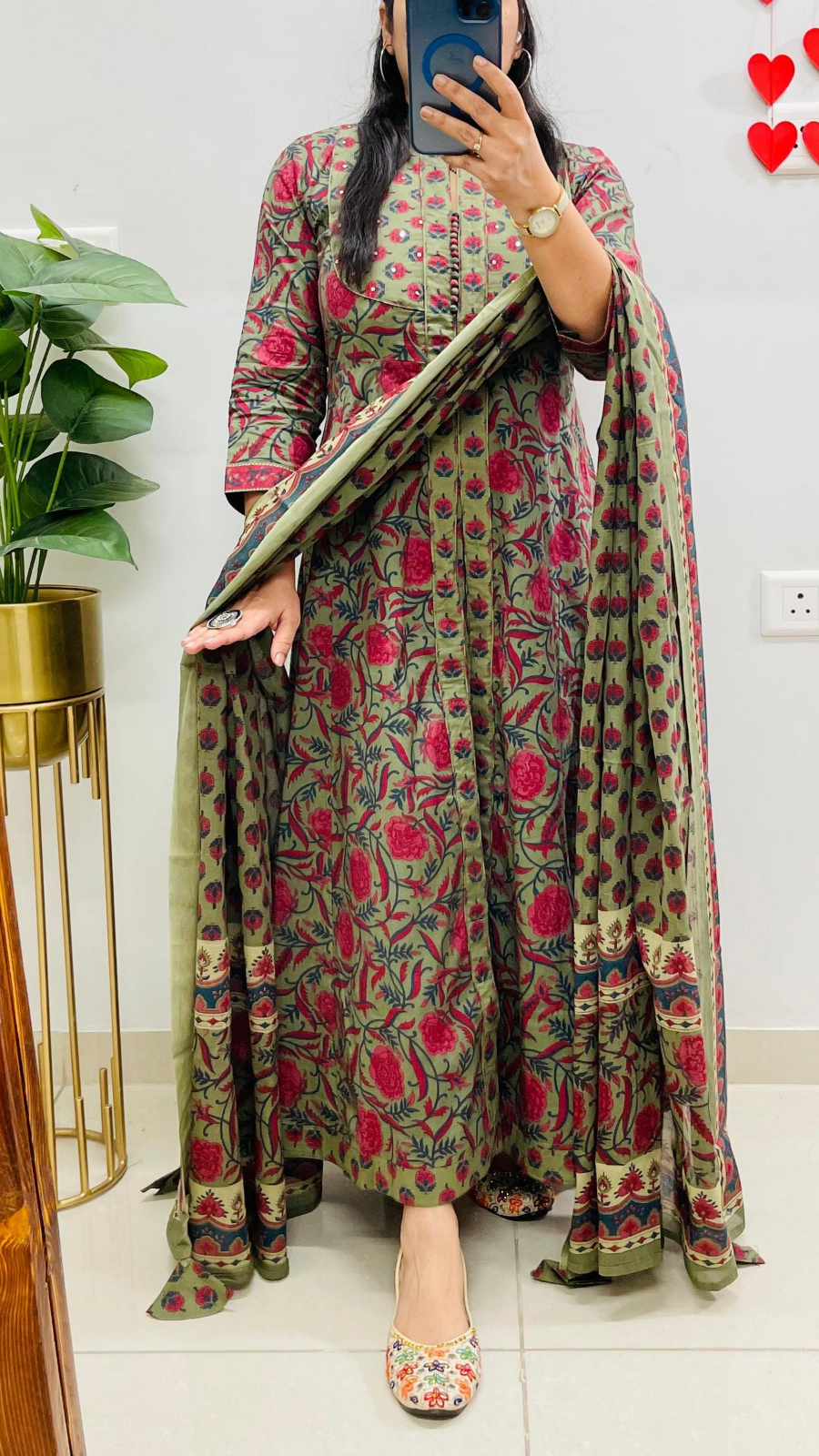 Classy Designer Dress in Complete Ethnic Traditional Look in Jaipuri Famous Ajrakh Print in Premium Fine Cotton Fabric with Front Cut Style Anarkali Kurti with Dupatta set perfect for all occasion….