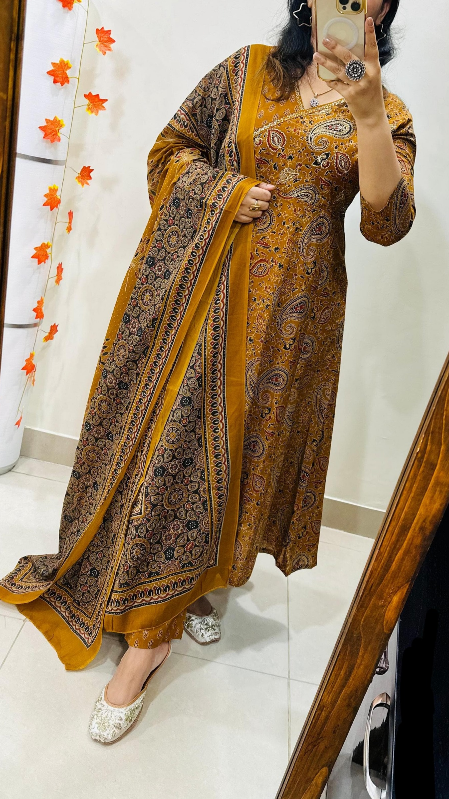 Designer Mughal Theme in Idaho style Floral Kali Kurti Pant dupatta set in *Premium fine Cotton Fabric* with badla adda work on yoke and side fashion tassels giving gorgeous look… 💥💥