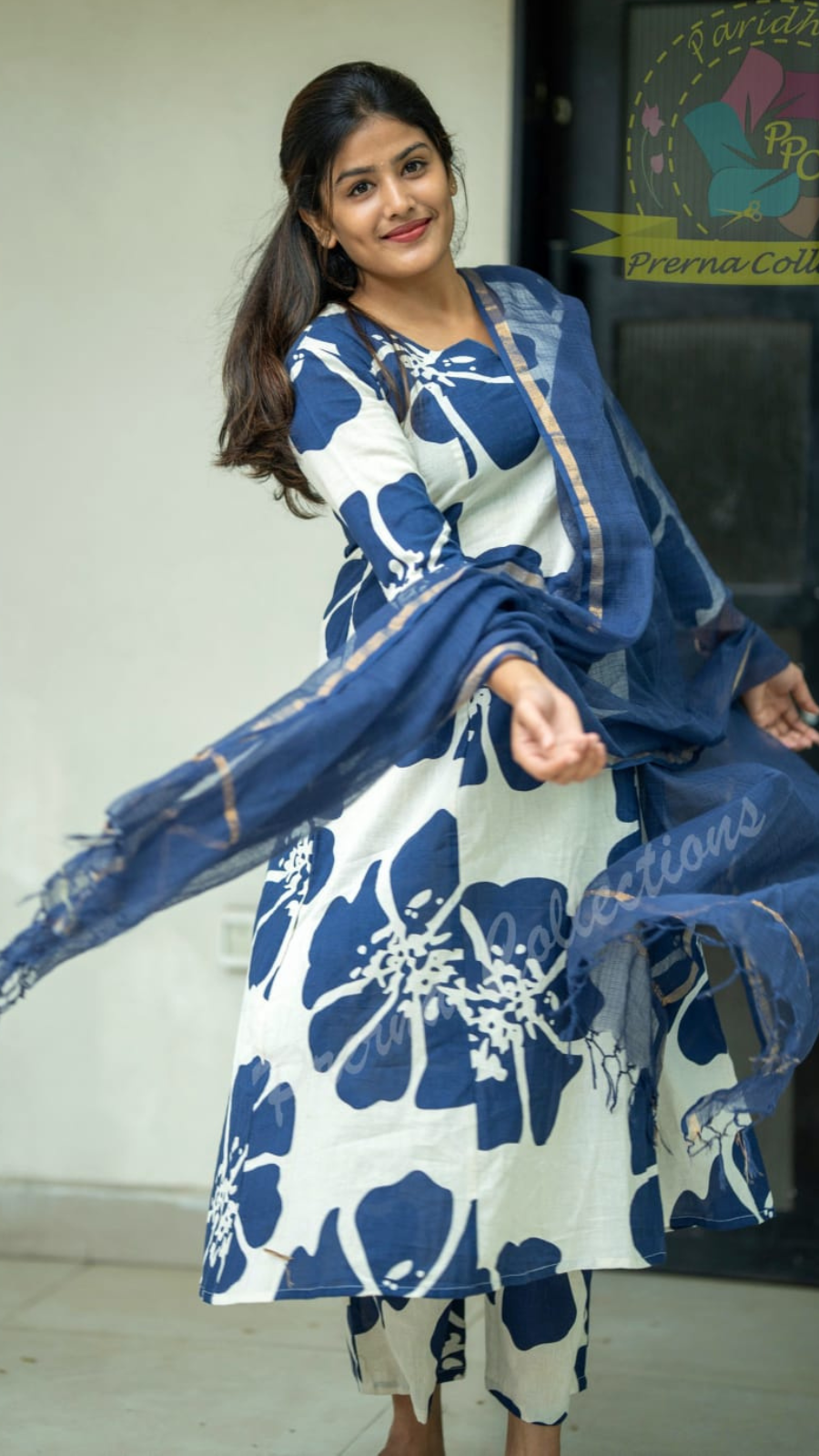 LOOK SMART AND CLASSY IN OUR KHADI FLORAL A LINE SET PERFECT FOR ALL OCCASIONS*