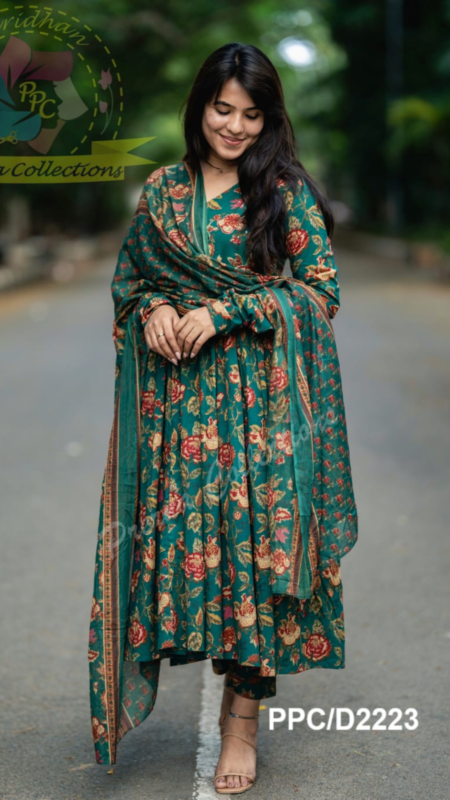 LOOK UR BEST THIS FESTIVE SEASON IN OUR CLASSY KALAMKARI PRINT ANARKALI SET PERFECT FOR ALL OCCASIONS