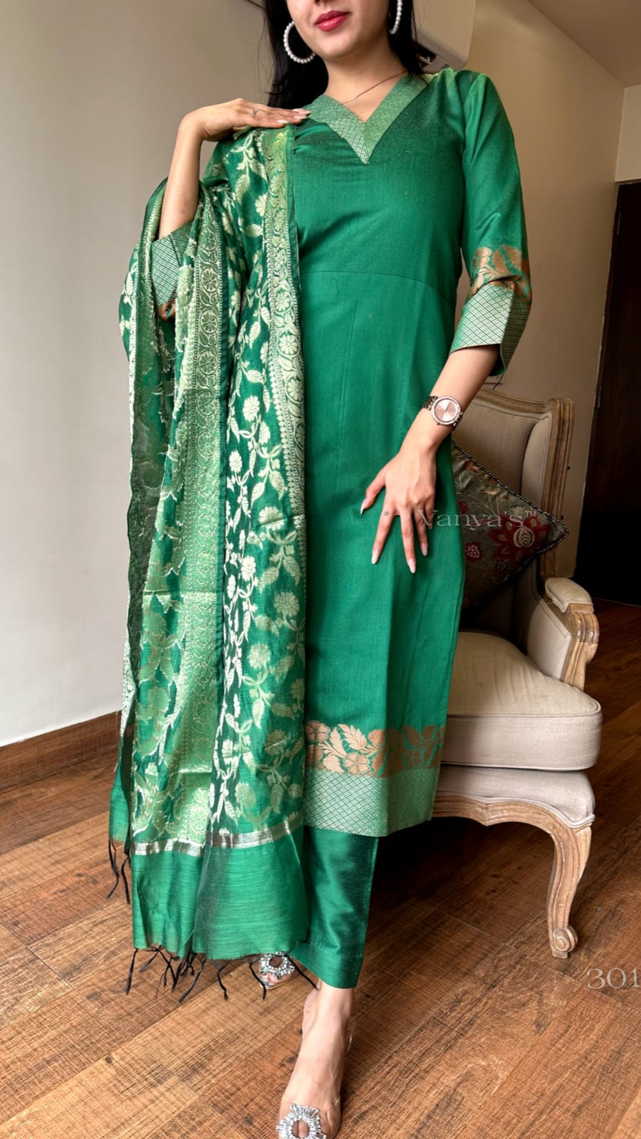 Elegant pure banarsi silk jacquard self zari thread banarsi suit are evergreen and must’ve in your wardrobe, so don’t forget to invest in this sophisticated design. This Suit Set is beautifully crafted It is paired with matching silk pant and pure heavy banarsi self zari jacquard duppata.