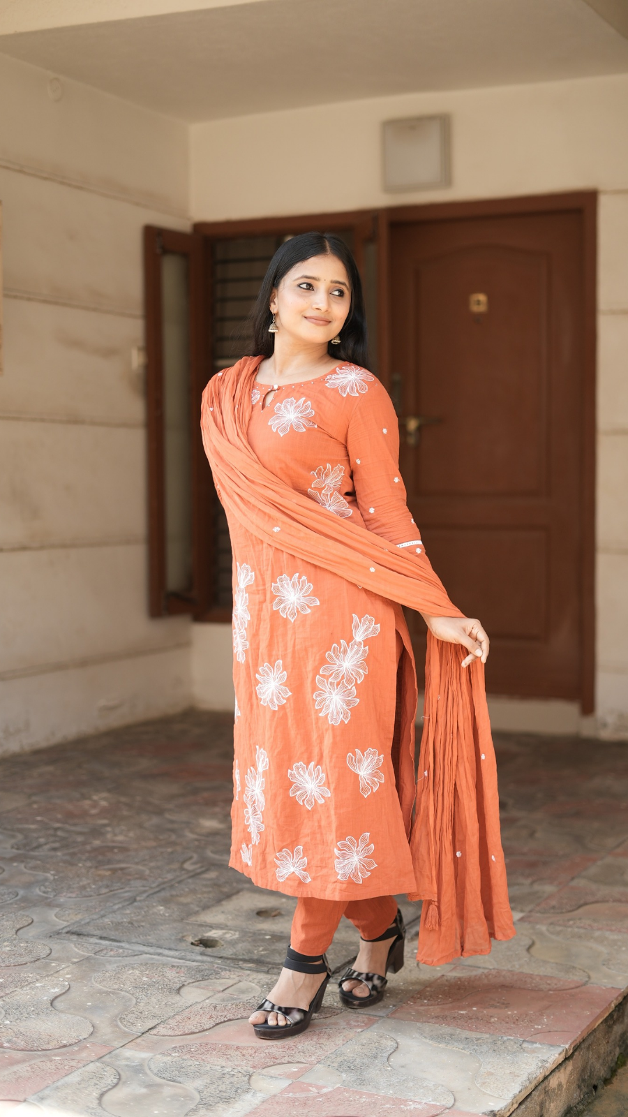 Fabric pure cotton handloom all over beautiful embroidery suit Paired with same cotton pant and mul crush full size duppata with all over embroidery 🪡
