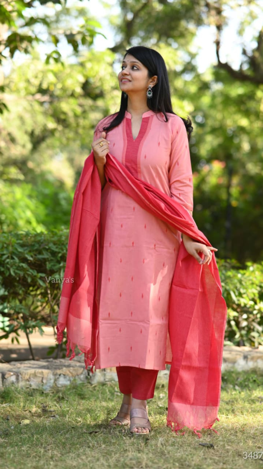 Step into effortless elegance with this finely crafted South cotton handloom straight kurta set. Designed for those who value both style and comfort, this set features a beautifully woven straight-cut kurta .The breathable handloom cotton fabric ensures all-day comfort, while its minimalistic design makes it a versatile choice for casual and semi-formal occasions. The outfit’s charm lies in its handwoven feel and clean, structured silhouette that flatters every body type.