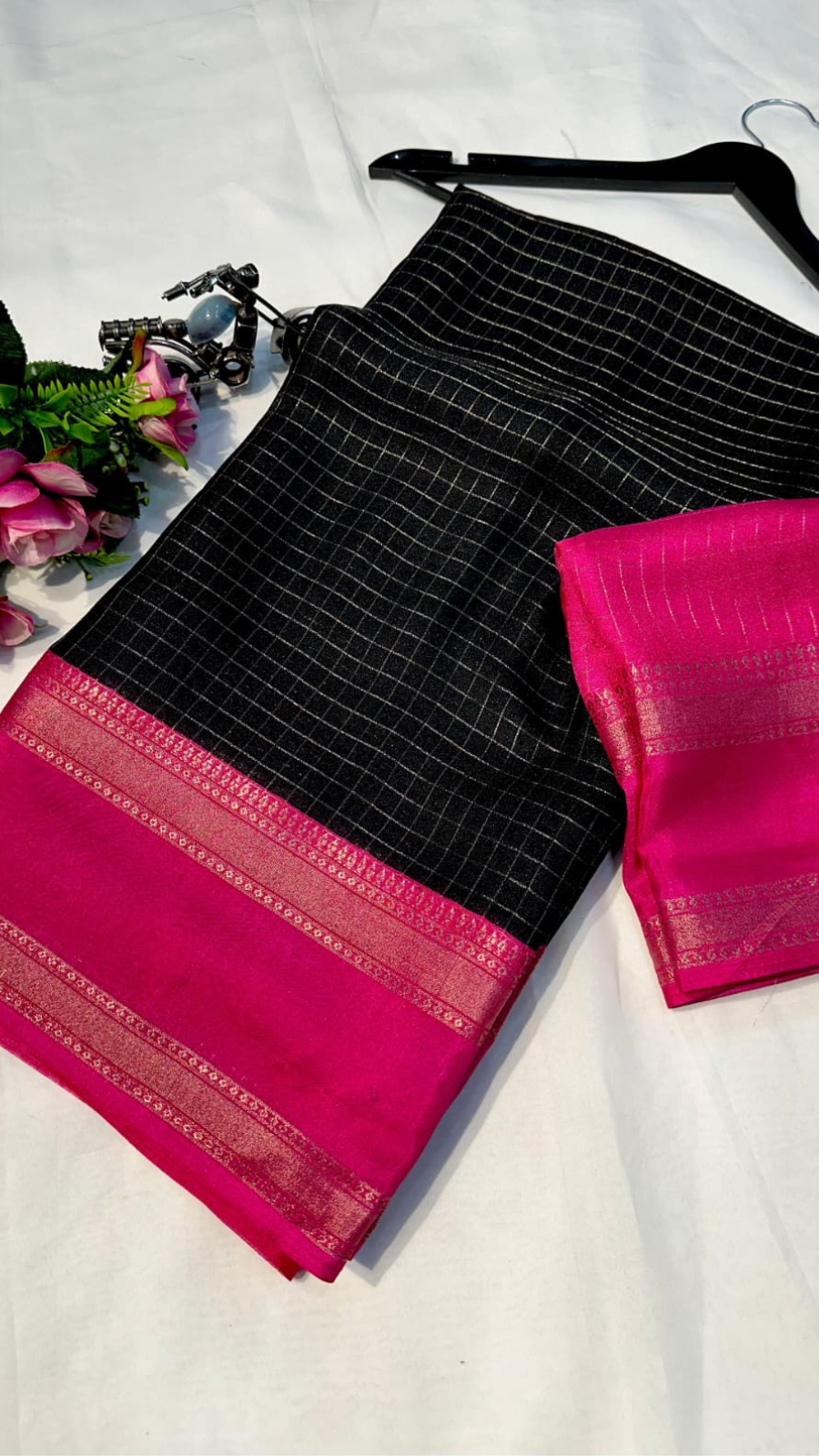 • Soft Black Dola Silk with small chex design